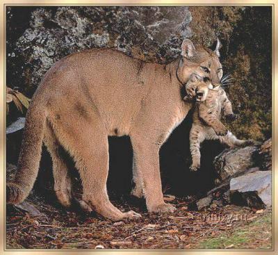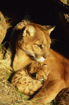 Ми-ми, какая чудесная фотография пумы с детенышем!
