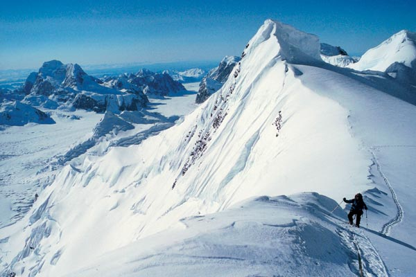Гора Маккинли (Денали) (6194 м) — самая высокая в Северной Америке. Есть действующие вулканы. В горах ледники Мейлспин.