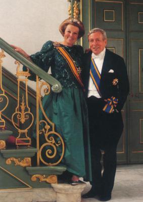 Королева родилась 31 января 1938. Беатрикс закончила Лейденский университет, где изучала социологию, экономику и государственное право. Доктор юридических наук. В марте 1966 года состоялась свадьба наследницы престола Нидерландов Беатрикс с германским дипломатом Клаусом фон Амсбергом. Необходимо отметить, что эта свадьба состоялась несмотря на протесты многих голландцев, связанные с национальностью Клауса и его членством в гитлерюгенде. В октябре 2002 принц Клаус скончался и был похоронен в делфтской Ньюве Керк.