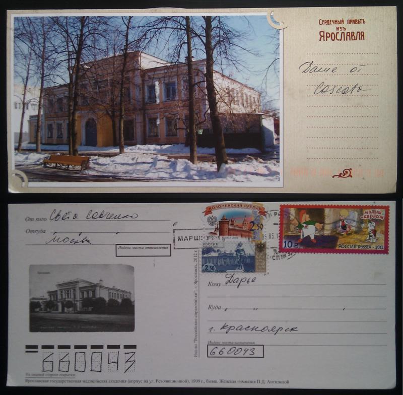 И по традиции, которую я для себя установила, пошлю тебе открытку моего города, чтобы было начало. Правда, моя открытка может оказаться не первой, т.к. письма идут по какому-то только им известному графику.