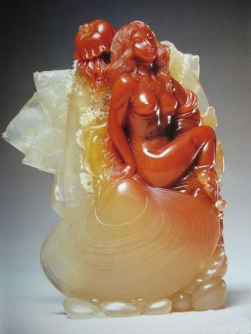 Как уже упоминалось, это полудрагоценный камень, имеющий множество цветов и оттенков, причем, цвета могут смешиваться в пределах одного самородка. Задача художника - придумать сюжет, чтобы обыграть краски. Меня поражает, как умело создаются скульптурные композиции, с учетом того, что нефрит - сложный материал для обработки даже в наше высокотехнологичное время. Обращаю внимание: все скульптуры это именно резьба, а не склейка из отдельных фрагментов.