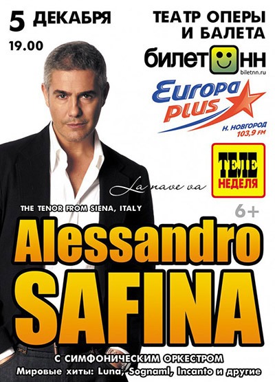 5 декабря в 19.00 иду с друзьями на концерт Алессандро Сафино в театр Оперы и Балета - единственный в Нижнем Новгороде!