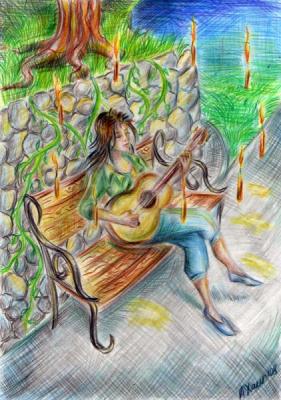 Это была Райли, играющая на гитаре, и знаменитая миссис Гаррисон