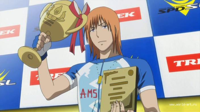 Микото это вообще нечто, не от мира сего паренек с первого взгляда влюбившийся в велосипед, как положено главному герою спокона, гений, все схватывает на лету, рохля и тихоня садится на велосипед и неузнаваемо меняется. Велосипедный монстр Ёскэ Фукадзава, блондин и этим все сказано, самоуверенный безбашенный эгоист-садюга. Койти Тэрао - третий член кружка, который сглаживает острые углы Фукадзавы, краеугольный камень его побед. Такэси Ямато - гениальный климбер, имеющий дурную привычку во время церемонии награждения не пожимать руку победителю, а давать по морде, пожалуй, мой самый любимый персонаж. Наото Хёдо - №1 в Японии отправился покорять Европу, вернулся разочарованный, но не сломленный.