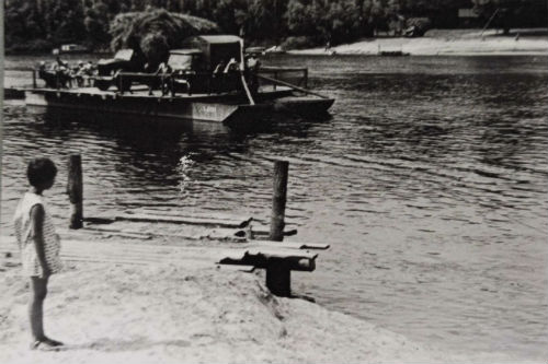 Речушка была совсем узенькая и мелкая. Кстати, поэтому и волну моторка подняла по пояс ребенку. Будь речка пошире, эта волна бы сгладилась, пока добежала до берега. Поскольку речка была совсем незначительная, то там не было даже моста. На другой берег переправлялись паромом. Через реку был протянут канат, закрепленный на берегах. Люди (и даже небольшие автомобили) размещались на пароме, лебедка тянула канат, и таким образом паром двигался к противоположному берегу.
