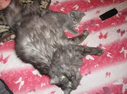 Через два часа, так и не отмытый, кот сидел на коленях у хозяйки, которая гладила его и приговаривала: "Hу где же та был? Я переживала, думала, ты разбился".
