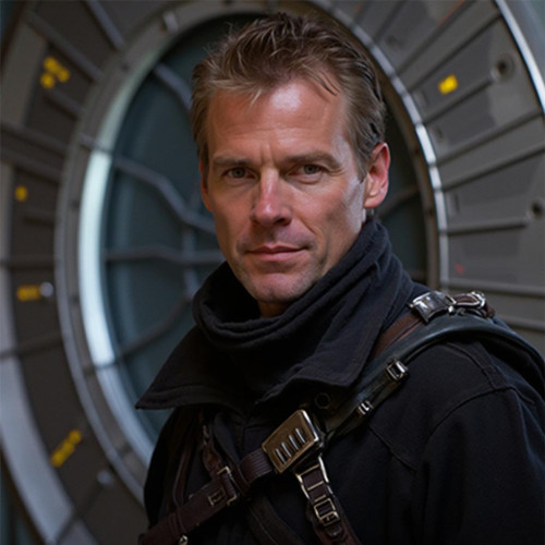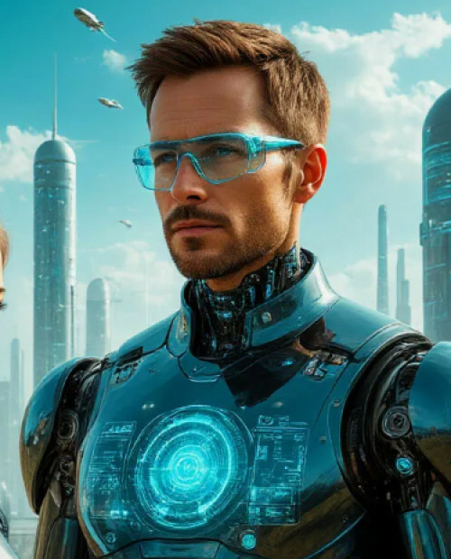 На второй, Макс выглядит намного моложе. Но, возможно, в будущем следы старения не так будут заметны. Люди научатся сохранять свой внешний вид на долгие годы. Форма одежды и очки соответствует космическому полету. Взгляд впечатляет. А бородка? Кто знает, что там в будущем будет в моде.