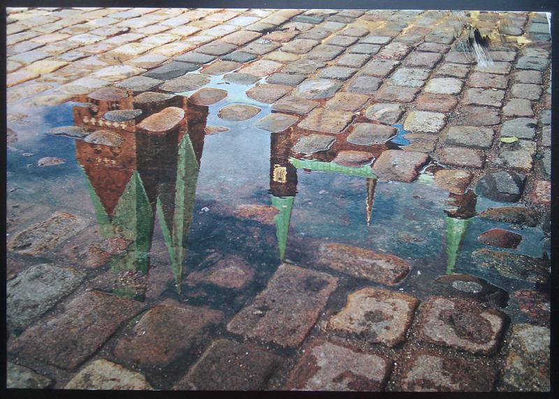 Любек, представленный лужей с отражающимися в ней шпилями Ратуши