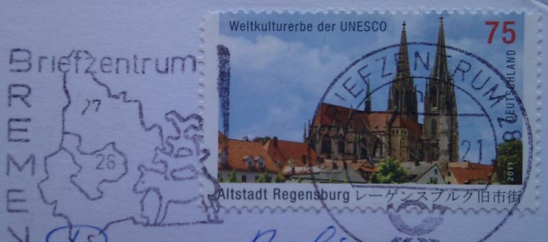 с маркой, которую здесь уже неоднократно показывали, с видом на историческую часть города Регенсбург