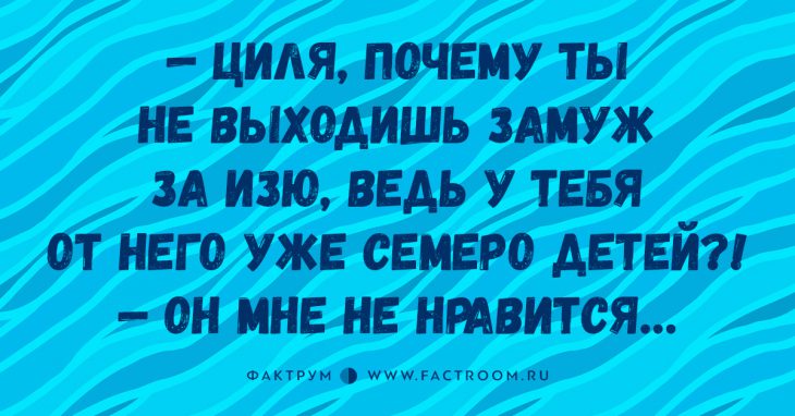 — Таки вы только посмотрите на этих мужчин! Сначала посылают женщину, а потом обижаются, шо сходила!