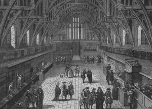 На древних, истертых плитах Вестминстер-Холла важничающие барристеры