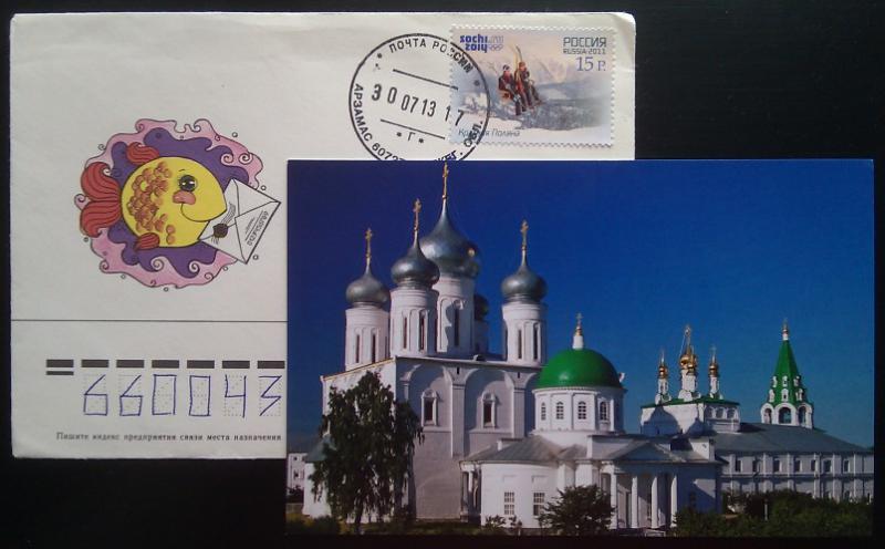пришла очень красивая отккрытка, выпущенная к 1000-летию Казани. На ней Казанский Кремль. Благовещенский собор. Такие яркие купола собора! Очень красиво!