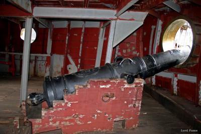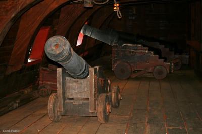- они перегнулись через борт и смотрели на устрашающие бойницы с жерлами пушек.