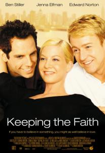Пересмотрела фильм "Сохраняя веру" (2000 год) с Беном Стиллером, Дженной Элфман (Дарма из сериала "Дарма и Грег") и Эдвардом Нортоном (он, кстати, еще и режиссер картины). Хороший фильм, отлично снятый, срежисированный и все роли сыграны замечательно.