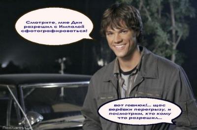 - Я все понимаю, раньше это было интересно, наши персонажи были диаметрально противоположны нам. Это привлекало зрителей. Но теперь… наши герои изменились, Дин уже не такой раздолбай, а Сэм – далеко не ботаник. Но имиджмейкеры не собираются ничего менять. Мы по-прежнему играем не только на экране, но и в жизни.