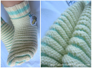 JuLyasha, интересные носочки! Я так никогда не вязала. Обычные носки часто вяжу и для меня проблем нет, чтоб вывязать пятку. Вот если с размером не угадаешь, это да! Надо теперь такие попробовать!