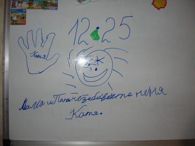 (Мама и папа не забывайте меня. Катя.) Бедный ребенок скучает ... уже третья неделя каникул пошла, домой только на выходные.