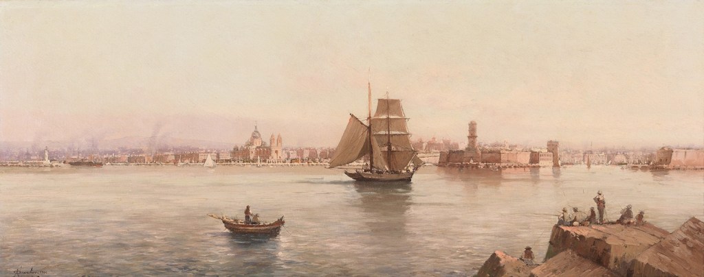 На картинах можно увидеть Форт Святого Николая, Кафедральный Собор Девы Марии и Базилику Нотр-Дам-де-ла Гард. На первой картине на месте базилики стоит еще форт.