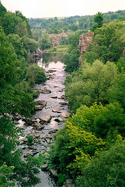 - Видишь, во-он те валуны? – спросила я, указывая пальцем на огромные камни у реки. – Они некогда видимо встали на пути потока, но воде камни, как ты знаешь, не преграда, и сейчас Рось бежит по выглаженным плитам. Очевидцы рассказывают, что в каменном дне реки у берега были выдолблены четыре ванные – летом на солнце вода нагревалась, и здесь устраивались купальни.