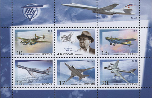 На почтовых марках изображены бомбардировщики Ту-2, ТБ-7, Ту-16, Ту-22М3, Ту-95.