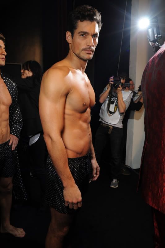 А НАШ ДЭВИД - скромненько сидел в сторонке, и демонстрировал СВОИ ПРИРОДНЫЕ ДОСТОИНСТВА . ДольчеГобановцы ,умные суки ребята, они знают - что любой их наряд просто потеряется рядом с красотой Дэвида,поэтому и выпускают его голяком !!!