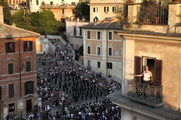 Ну, а заканчивается этот фильм там же, где и начинался - на улицах Рима, а именно - у подножия Испанской лестницы. На балкончик выходит усатый итальянец и говорит, что он-то как раз и знает самые интересные и необычные истории о Риме, а оркестр играет великолепную Volare
