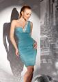 Короткое платье цвета аквамарин с широкой асимметричной бретелью на одно плечо и горизонтальными драпировками по всей длине - незаменимая вещь для вечернего гардероба в этом сезоне. Особенно гармонично оно будет сочетаться с чуть тронутой загаром кожей и - обязательно - блеском в глазах!