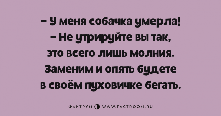 — А я вчера со своим поссорилась. Говорю ему: «»А ну, разворачивайся на 360 градусов и марш отсюда!»»