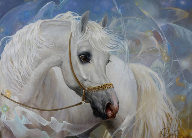 Белая кобылица, выведенная из ворот конюшни, казалось, попала в Корстэнфорт прямо из сказки. Она была фантастически красива: изящная горбоносая голова с выразительными миндалевидными глазами и маленькими ушами, благородно-изогнутая шея с длинной волнистой гривой и пышный хвост, почти достающий до земли. Она будто танцевала, поочередно высоко поднимая копыта. Все, кто видел ее впервые, смотрели на нее с восхищением, а княгиня - с гордостью.