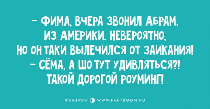 — Боря, я слышал, вы были вчера в театре. — Таки да. — И шо, вам там понравилось? — Ой! Больше всего мне понравилось, когда в конце раздавали пальто… Я взял себе три!