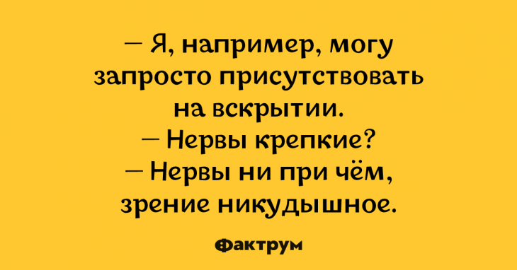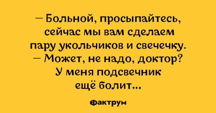— Ну, представьте, — говорит доктор, — что первую половину ночи с блондинкой сплю я.