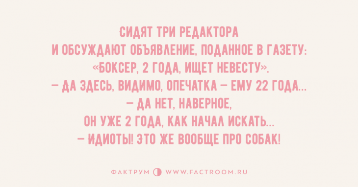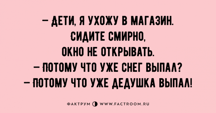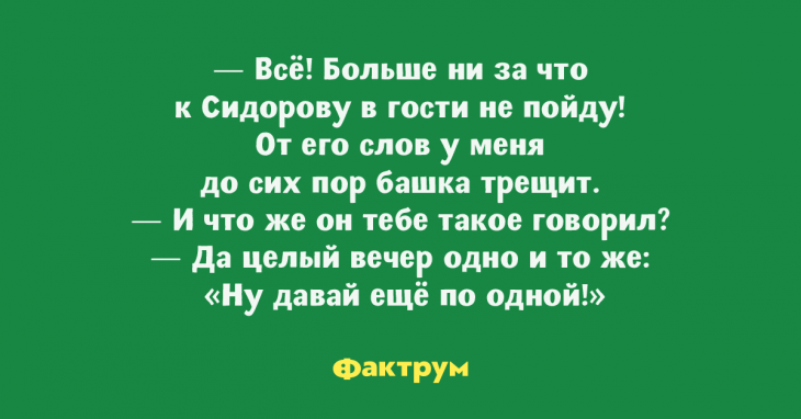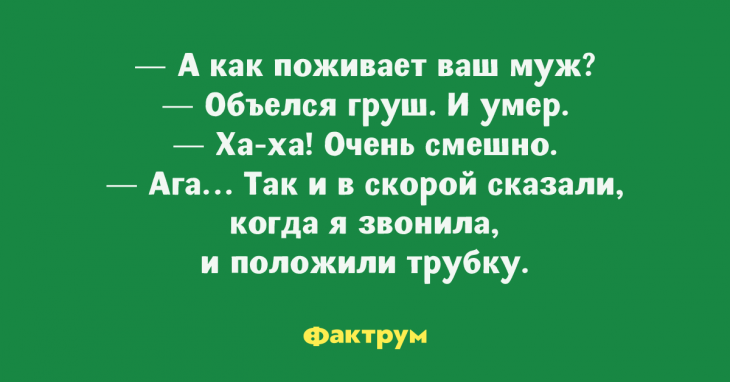 — Сеня, посмотри на лицо женщины, которая сидит напротив. Купи мне платье такого же нежно-зеленого цвета!
