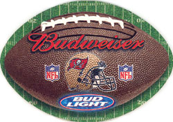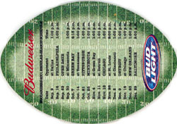 Бирдекели пива "Budweiser" и "Bud Light", США. Эти марки традиционно спонсирует американскую Национальную футбольную лигу (NFL). На подставке представлено расписание игр команды Tampa Bay Buccaneers в чемпионате 2001 года.