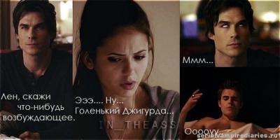 Это поцелуй был совершенно горяч. Кетрин отдалась ему, Деймон на мгновение отдался, мы серьезно отдались этому моменту. Даже видя, что Деймон целует Кетрин, подобные сцены нас постоянно заставляют задуматься, каким же тогда будет первый поцелуй Елены и Деймона. Да, она его уже целовала, но она же думала, что он умирает. Мы говорим об их первом поцелуе, когда ни у одного из них жизнь не будет висеть на волоске. Но еще горячее сцены воображаемого поцелуя было то, как Деймон оттолкнул Кетрин. Ему просто больше не интересно. Он знает, кого хочет, и это не Кетрин, и это ненадолго.