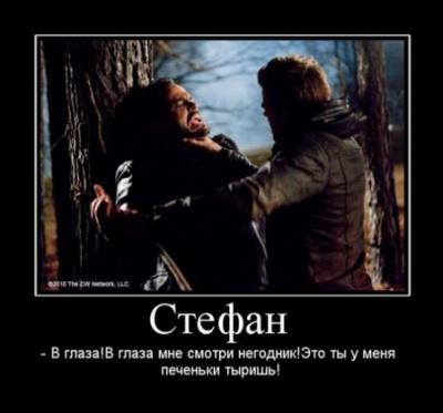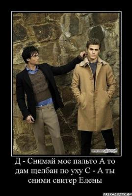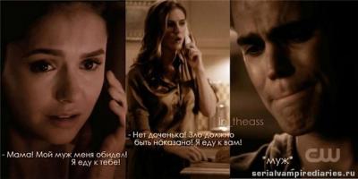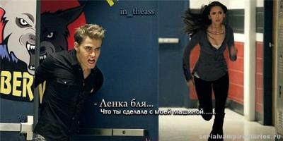Стефан все еще держится за свою человечность, хоть и ведет себя как полный придурок. Это все часть плана Елены, чтобы заманить Стефана в ловушку и привести его в чувство. Она напивается и направляется к скамейкам на стадионе в нетрезвом виде. Она как бы дразнит Стефана и насмехается над ним. Когда она падает с трибуны, Стефан ловит ее. И Елена знала, что так и будет. Не только потому что, он что-то почувствовал, когда поймал ее, но вы можете заметить, что и Елены почувствовала это. Кто знает, что это было, что заставило Стефана отреагировать так, но нам очень понравилось.