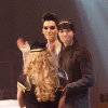 Ведущая (Коллиен): Tokio Hotel! Боже, зал сходит с ума! Скажите... вы только что вернулись из Тайваня, и какие же истории я о вас слышу? (обращаясь к Тому) Я имею в виду маленькие голубые таблеточки, что там с ними произошло?