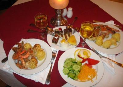 Они подошли к ресторану и сели за столик. Было немноголюдно. Тихо играла приятная музыка. Они снова заказали блюда, полагаясь на вкус официанта, и вскоре тот принес заказ. ...