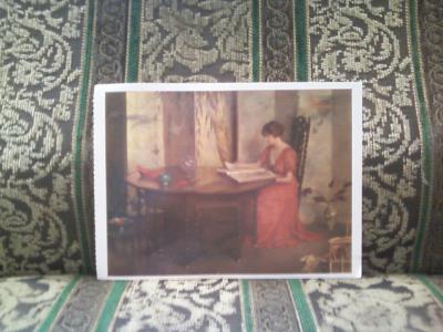 Слава Богу еще входную дверь не завалили, а то пришлось бы выходить наружу через черный вход. Но... мои усилия не прошли даром, к ящику я все же пробилась и нашла в нем красивую открыточку читающей женщины, вернее на ней нарисована женщина, читающая другой - подруге, или сестре, книгу. Вот! И правда - эта серия отличается от той, что я рассылала. по-моему это вторая часть. т.к. на открытке написано по-английски "Читающие женщины II" Ласточка, большое тебе спасибо! Теперь и у меня есть открытка этой серии.