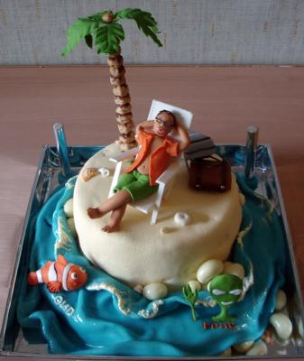 простите, чтобы картину не запачкать, сначала тортик от меня с намеком, что можно бы и на море в Мексику устроиться отмечать, в Н.-Й. жара и выхлопные газы жизни не дают! Хотя у Рорка в Центральном парке посвежее...