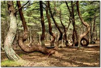 В национальном парке “Куршская Коса”, что в Калининградской области, находится одно очень загадочное место под названием “Танцующий лес”. Под столь интригующим названием скрывается небольшой участок соснового леса, деревья в котором имеют очень необычную форму. Стволы растущих на этом участке леса сосен извиваются и закручиваются причудливыми спиралями! У древних пруссов было поверье, что закрученные в кольца деревья являются вратами в мир духов. Считалось, что прошедшие эти врата могут избавиться от болезней и вернуться в наш мир здоровыми, а в некоторых случаях и обретшими сверхъестественные силы.