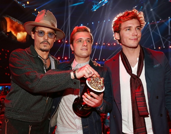 Джонни Депп, озадачивший некоторых зрителей своей рваной шляпой. В отсутствие Дженнифер Лоуренс награду принимали Джош Хатчерсон и Сэм Клафлин.