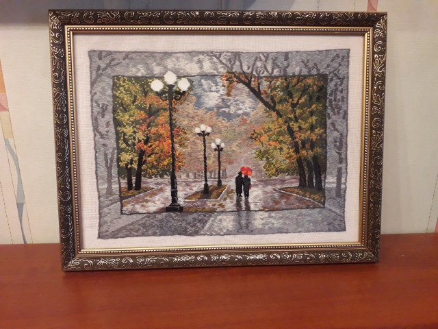 Вот, закончила вышивку, которую начала в сентябре (похвастаюсь). Но для того, чтобы верно подбирать оттенки ниток, мне приходилось с раннего утра у окна мулине перебирать. Уже в обед сумерки, и ничего не видно. белый и серый смотрятся одинаково...