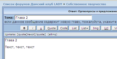 В разделах Собственное творчество и Фанфики новую главу теперь можно указать сразу при написании нового сообщения: