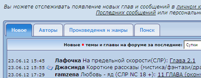 Popi писал(а):А что потом при этом почти все сообщения автора удаляются? потому-то когда я нашла этого автора в поисковике то получается что он отправил всего 4 сообщения, а у него их было гораздо больше! просто я видимо еще надеюсь что произведение восстановится!