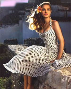 Ткань в горошек берет свое начало в конце XVIII столетия, когда однотонные одежды французской знати стали разбавляться тканями с новыми узорами и орнаментами, среди которых появляется и ткань в горошек. Нет ничего более буколического, простого и в то же время очень привлекательного, чем рисунок «в горошек». Платье в горошек – это такой же канон, как и «маленькое-черное-платье» Коко Шанель. Как и в случае с черным платьем – платье в горошек и вообще «гороховая» тематика всегда была вотчиной французских модных домов. А королем этого принта по праву можно назвать Ив Сен-Лорана. Его деловые жакеты, объемные блузоны нередко кроились из ткани в черно-белый горошек. Рекомендации: Горошек – классический узор. Поэтому к нему можно подбирать яркие аксессуары в тон. Главное – не переборщить. Обувь должна быть обязательно однотонной. Орнамент в мелкий горошек больше подходит девушкам «в теле». Мелкие овалы и светлые круги визуально уменьшат грудь и широкие бедра. Крупный горох хорошо смотрится на стройных фигурах. Чем крупнее горох, тем моднее.