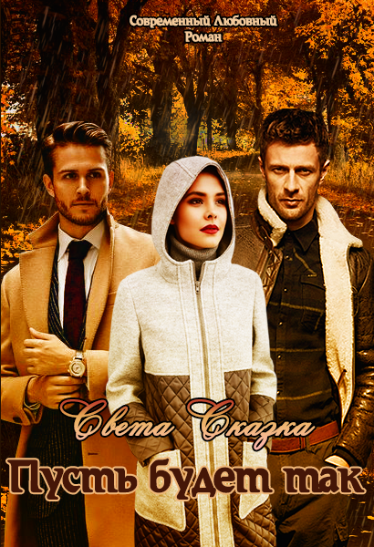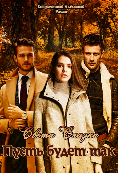 10. Любые пожелания: Без ярких красок, оба героя на обложке + третий не ГГ. События происходят осенью. Можно показать дождь Она -29 лет,милая, серые глаза, русые волосы. ( можно использовать любой образ, главное не известную личность.Он 33 года, темные волосы,серьезный, красивый.