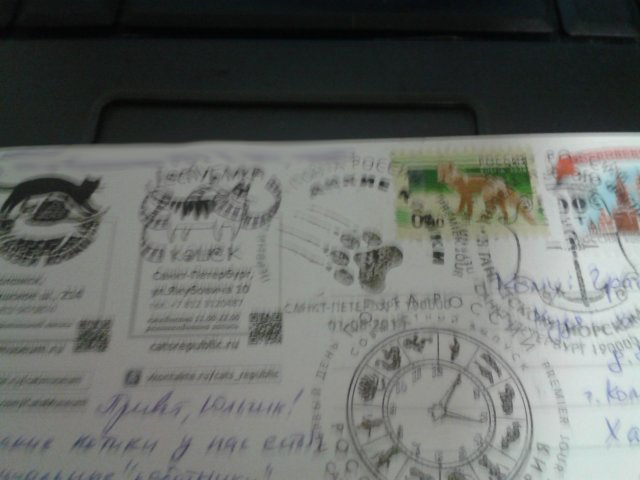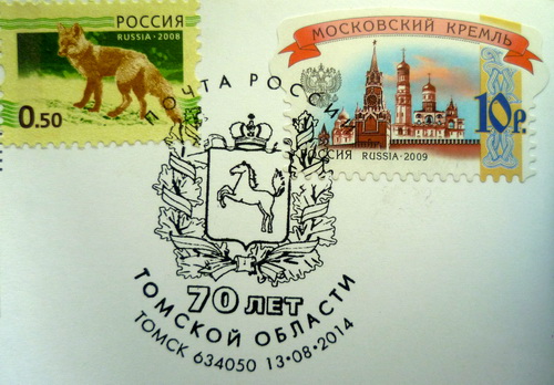 Марка, правда, стандартная, хотя я ожидала, что будет тематическая, с Томской областью, выпускалась такая когда-то. Но, видимо, кончилась у девочек, колторые устраивали этот обмен в ЖЖ. Ничего, и так красотища)))