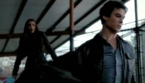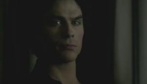 Первый момент, когда она смотрит не него в номере мотеля, лежа в постели. Она просто не может оторвать глаз от него, она явно очарована им, и не только его великолепным телом (особенно привлекательным в этой серии), но и его сложным характером и тем, каким по-настоящему хорошим он может быть. Даже после того, как он ловит ее взгляд, полный немого восхищения, она не может остановится. Она снова открывает глаза после короткого притворства о том, что ничего не происходит, и не отрываясь, смотрит ему в глаза. Это и мотивирует Деймона прилечь рядом.