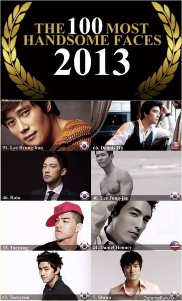 Из Южной Кореи в этот список вошли: на 91 месте - Бён Хон Ли; на 66 месте – Деннис О; на 46 месте– Рейн; на 40 месте - Ли Джон Джэ; на 33 месте – Тэян; на 24 месте – Даниель Хенни; на 13 месте – Тэкён; на 7 месте – Чхве Шивон.