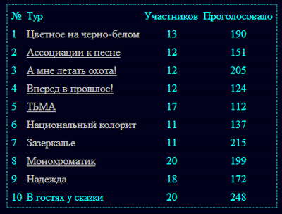 2. В табличке со списком всех туров добавлены колонки с общим числом конкурсных работ и количеством пользователей, принявших участие в голосовании:
